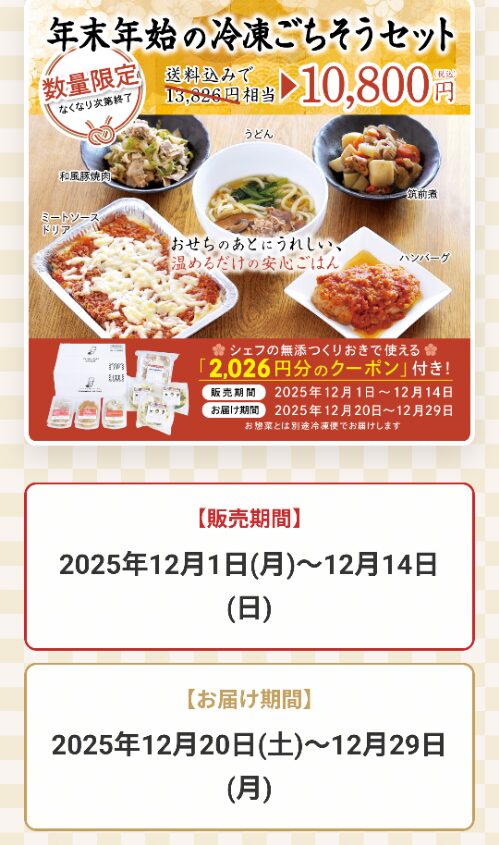 ワタミの宅食12/31〜1/412月24日2025年11月公式回答