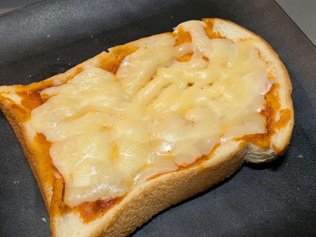 デリピックスのオープンサンドの見た目で温かさはお伝えするのが難しいので、チーズがとろけるピザトーストでお見せしています。